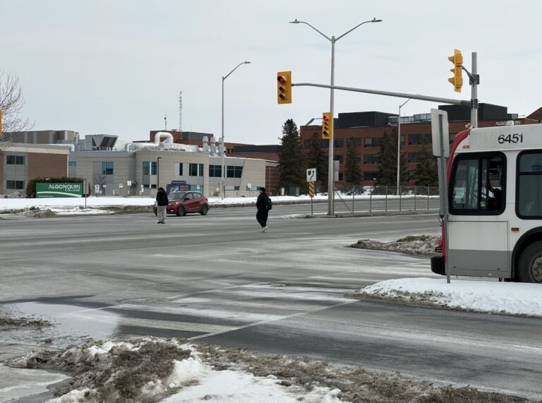 The intersection of Navaho Drive and Woodroffe Avenue is right by the Baseline bus station and one of the most prominent intersections for Algonquin commuters (Photo credit: Vasileios Tselios)
